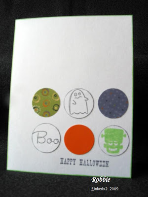 Stamps: Batty for You, All Holidays, Pictograms Paper: white, Halloween Night DS, paint chip Ink: Palette Noir Black, Vintage Violet (retired In Color), Gable Green Accessories: 1″ circle punch, sponge dauber
