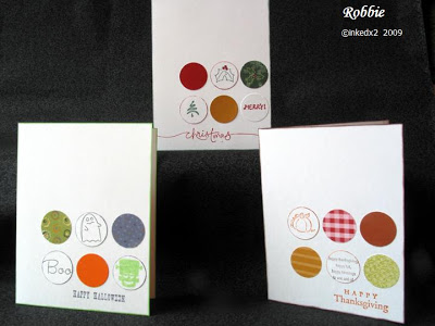 I used the Splitcoast Stampers Clean and Simple forum which posted a sketch challenge on May 4. I used the sketch to create a Halloween, Thanksgiving, and Christmas card that I will add to my collection to send out. Here are the cards.