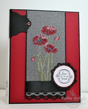 The last share is a card created by Penny Nesbitt. The coloring of the poppies is fabulous. Black and Red is a great combo and this card is stunning.