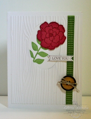 This share was created by Christina Cummings. The use of the woodgrain embossing folder with the flower peeking out is a great idea.