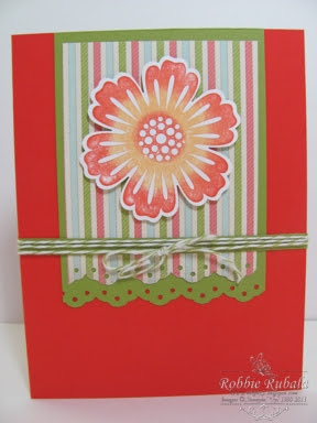 Cute card, Robbie! I love the colors on your flower and the way you lined your envelope. Maybe I'll have to give that a try sometime. 🙂 Thanks for playing with the Red Hot Stampers.