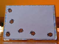 Stamps: Brush Hello (Stampendous), Ladybug (Rubber Stampede) Paper: orange and blue (not sure as they were in my scrap pile), white, Spring Stack PP (DCWV) Ink: Palette Noir Black, Kaleidacolor Bouquet Accessories: black brads (Pink Hedgehog), Copper Star Gelly Roll, Spica black microflake pen, Designer Label and 1″ circle punches, dimensionals