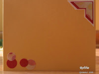 Stamps: Pocket Silhouettes Paper: gold, red, and vanilla cardstock, circle patterned paper (not sure where any of it came from as it was in my scrap pile) Ink: Ruby Red, Mango Madness (VersaMagic) Accessories: ribbon (Michael’s), photo corner – 1/2″ circle – 5/8″ circle punches,