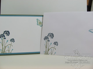 I thought it would be fun to have a butterfly on the spinner as the have a tendency to flit about. When I put my butterfly on my spinner it was too small so I had to add a punched circle behind it. I also was originally going to have my butterfly going down the side of the card but opted or it to go across the top of the card.