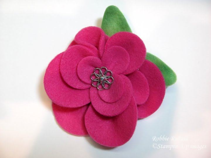 Well I don’t have a card for you today but I do have a creation for you. I wanted to do a 3D swap for convention but I couldn’t think of anything. In talking to Connie from my Late Night Stampers group through e-mail I suggested a fleece flower pin. She thought it would be a great idea so I went with it.