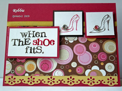 I love this patterned paper with the rose red! It’s gorgeous. Great card, makes me want to go shoe shopping!