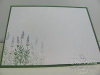 I modified a few things. I have my ribbon going all the way across the card. I also have my brads going across the top rather than down the side. Here is what I created.