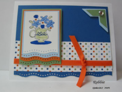 I thought I would share one of the cards that we are making at the retirement village this week. We are making 2 others that we made in my July workshop. I modified this one based on one of the other cards from the workshop.