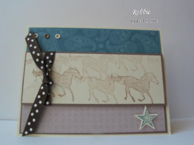 Stamps: Wanted Paper: Blue Bayou, Chocolate Chip, ivory, Blue Bayou Patterns DS, Berry Bliss DS Ink: Blue Bayou, Chocolate Chip Accessories: small star punch, Very Vanilla and Chocolate Chip brads (Pink Hedgehog), ribbon (Ribbons and Bows Oh My), crop-a-dile, dimensionals