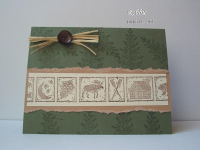 Stamps: Lovely as a Tree, Great Outdoors (wheel) Paper: Always Artichoke, Close to Cocoa, ivory Ink: Always Artichoke, Chocolate Chip Accessories: raffia, chocolate button (Pink Hedgehog), Zots