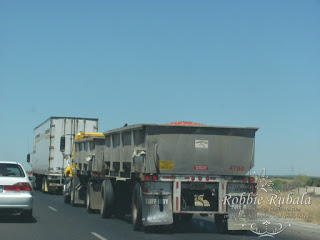 We saw tons of big trucks hauling 2 cars that were loaded with roma tomatoes like this one