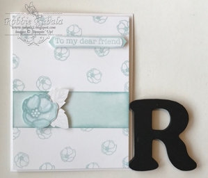 Last week I introduced this idea and at that time I pulled the Soft Sayings card kit and Soft Sky ink. So my challenge was to create a card using the stamp set from the kit and Soft Sky ink along with a neutral card stock. Today I have that card for you.