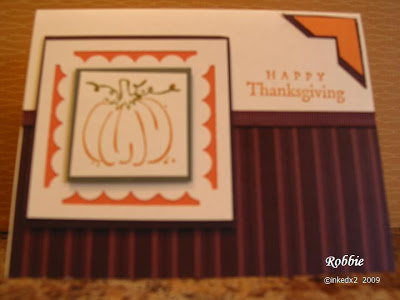 I have been making Thanksgiving cards for the Operation Write Home organization and my son-in-law. I thought I would share 2 of my cards with you today. The first card is a case of one of my cards from last year. The second is a case from a blog ran across but don’t can’t find it now.
