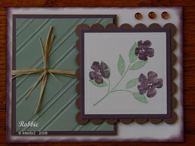 Ohhh, the sketch on Julee’s blog was so much fun this week. She used rounded corners. I hadn’t used them in a long time and it really made the card stand out. When I started this card I had wanted to highlight Purely Pomegranate but when I started putting the card together it was just too overpowering for me. I did still use it some along with Wild Wasabi which are both retiring in about…