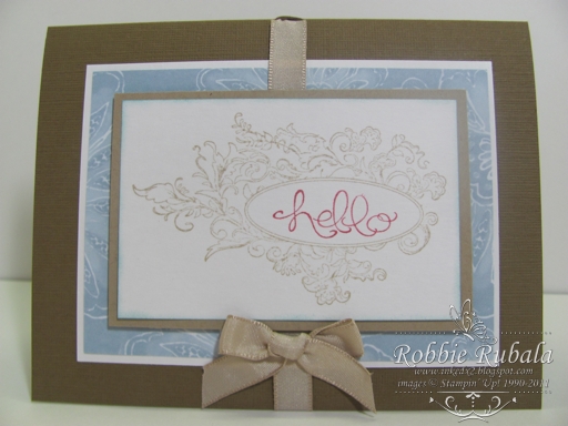 beautiful, Robbie — I love how you blended two stamp sets that are so different — one elegant and one whimsical. They work beautifull together. Great job! Thanks for playing along this week at Stamping 411! Blessings, Gretchen