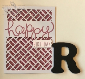 For my last card I wanted to do a feminine version of the birthday card. I used the Sweet Sugarplum glimmer paper from Sale-a-bration and the matching card stock and ink. For this one I did not have room to stamp “birthday” under the cut out so I stamped it on a scrap piece of card stock and used the retired washi label punch to punch it out. Here is the feminine version.