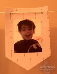 Another decor item Jess wanted for Remi’s party was a photo banner. She takes a photo from each month of her first year and uses them to make a banner. She did the same for Zoie and it is so cute. With this one we made it out of fabric. I used one of the banners from our Banner Kit from last year as a pattern. We cut out the banners then ironed on the pictures she had printed onto fusible photo paper. After that we applied sticky backed felt to give them some stability. The last thing we did was use the Crop-o-dile to add the eyelets. We strung the rope through each banner and the banner was complete. She may want to add some decoration in between each banner at a later date. Here is the banner.