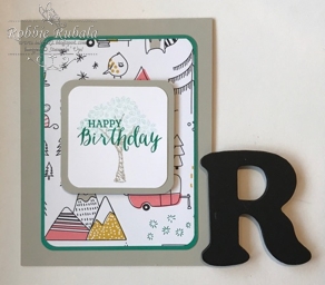 I got the Pick a Pattern dsp on my preorder. I was intrigued by the back sides of this paper so I ordered it. When this challenge came up I decided to see if I could use on of the other sides. I chose the one that had mountains, campers, trees, and some animals. I thought it would make a great guy card. I paired it with the Sprinkles of Life stamp set. My sentiment is from Rose Wonder. This was a simple card as it just has some layered rectangles and squares. Here is my creation.