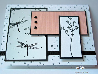 Stamps: Sprig (CC Rubber Stamps), Delight in Life (retired) Paper: Basic Black, white, Spring Flowers PP (retired), Night Light Papers ( Paper Parachute) Ink: Basic Black Accessories: black brads (Pink Hedgehog), ribbon, sticky tape, dimensionals