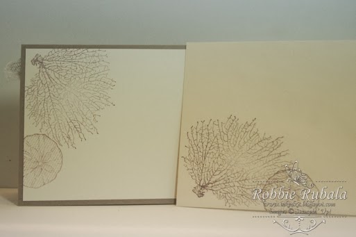 I cut a larger piece than I needed and then used my spritzers to color it with Pool Party and Marina Mist. After I let it dry I stamped it and then added some Dazzling Details. I also pulled out some of my gauze from my medicine cabinet and colored it with Crumb Cake. I added it to mimic netting. Here is my final card.