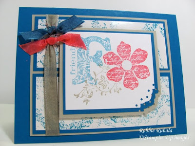 Stamps: Vintage Vogue Paper: Pacific Point, Sahara Sand, white Ink Pacific Point, Regal Rose, Sahara Sand Accessories: white taffeta ribbon, eyelet border punch, sponge daubers, sticky tape, dimensionals