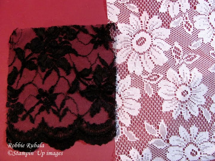 There are 3 samples. The top sample is done on glossy paper with the black lace and Pacific Point ink. The bottom right sample is done on glossy paper with the white lace and Regal Rose craft ink. The bottom left sample is done on regular white cardstock with the black lace and Sahara Sand ink. As you can see the darker the ink the better it turns out. The pink one is a little blurry as in pressing the cardstock on the lace it slipped – I would not recommend using craft ink as the blue had no issues even thought it was on the glossy paper also. The bottom left has a very faint pattern. I am thinking I might be able to use the Vogue wheel and do something with it. I will play and see.