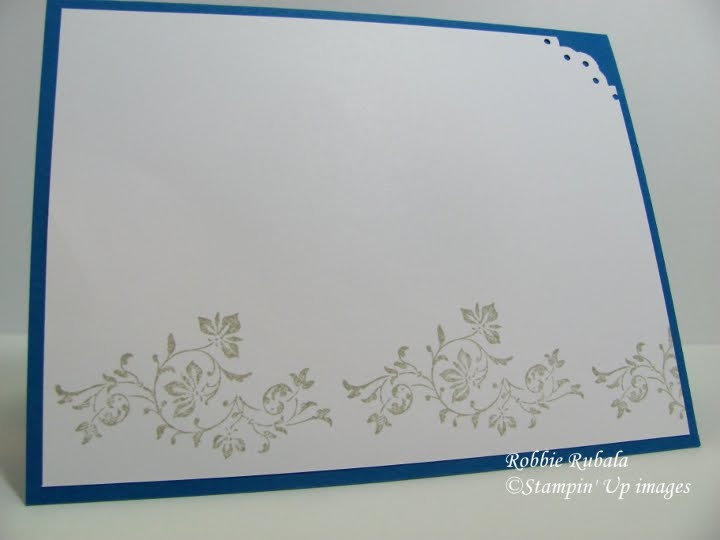 Stamps: Vintage Vogue Paper: Pacific Point, Sahara Sand, white Ink Pacific Point, Regal Rose, Sahara Sand Accessories: white taffeta ribbon, eyelet border punch, sponge daubers, sticky tape, dimensionals