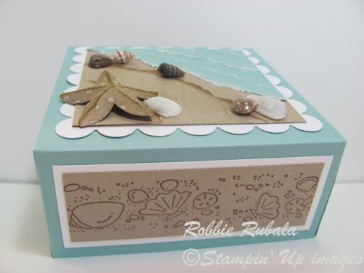 This week at Late Night Stampers the challenge is a beach theme. Carole’Anne and Sandi have a 3D challenge this week. I thought it would be fun to combine the 2. Sandi came up with a template for a circle box. I thought it would be fun to create a square box instead. I did use the was Sandi put her box together to design mine.