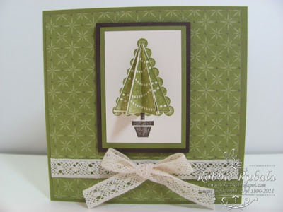 My card today is a quick and easy card and could easily be mass produced for Christmas. I was inspired by a fellow stamper – Julie Davison. I saw a card on her blog where she use the pennants punch and made a 3D tree and I decided to give it a try. Here is what I created.