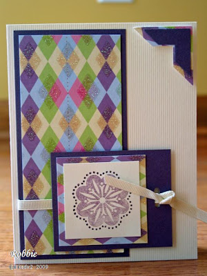 Stamps: Baroque Motifs Paper: Perfect Plum, Vanilla, Glitter Stack (DCWV) Ink: Perfect Plum Accessories: Photo Corner & Slit punches, ribbon, dimensionals
