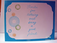 Stamps: Fun & Fast Notes, Curvy Verses, Seeing Spots (retired), Listening (Hero Arts) Paper: Apricot Appeal, Green Galore, Tempting Turquoise, white, Rainbow Sherbet DS Ink: Apricot Appeal, Tempting Turquoise, Palette Noir Black Accessories: Apricot Appeal – Green Galore – More Mustard – Tempting Turquoise markers, Apricot Appeal – Green Galore – Tempting Turquoise – silver brads (Pink Hedgehog), clear Sakura gelly roll pen, sticky tape, dimensionals