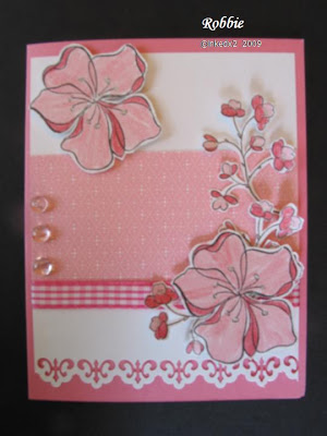 WOW, fabulous card Robbie. I love the different shades of pink and the 3D flowers are gorgeous – love your pretty white border too.