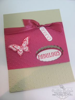 I, too, love this butterfly and the punch. Your colors are great. And I like the "Fabulous" window — I'm going to try a window too. Thanks for the inspiration. Very pretty card.