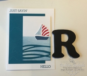I am in love with the sailboat from the Swirly Bird stamp set and Swirly Scribbles thinlets. So I decided to play with them for my card again today. I began by sponging my water onto my card stock. I then cut my waves using the Swirly Scribbles thinlits. To attach my waves I used my Tombow multipurpose glue. I stamped and cut out the pieces of my sailboat and added to my card front. I then created my layers and added my sentiment. My card was complete. Here is my finished card.