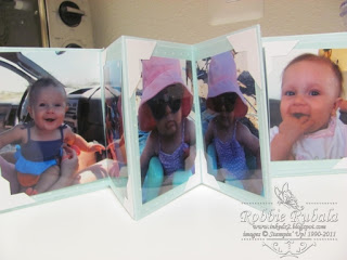 This is the perfect size to fit in my purse and when someone now asks to if I have pics I can pull this out. I also used the photo corners so I can slip the photo under the corners and not glue them down. This way I can change the photos as Zoie is growing so fast.