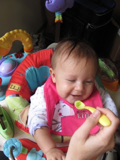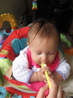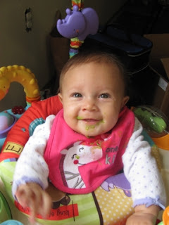 Speaking of Zoie, here are some pics I took of her yesterday. It was her first experience with people food. She had peas. These are super cute!