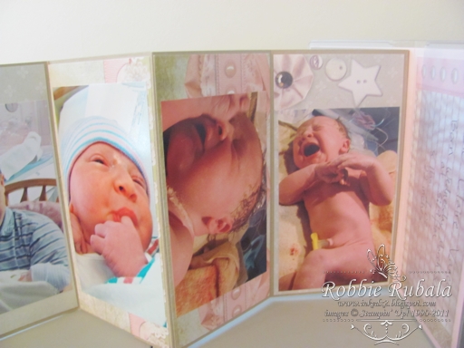 2. Cute book, and cute baby! I do have one question: how do you mount it in the cover so that you can still see both sides of the pages?