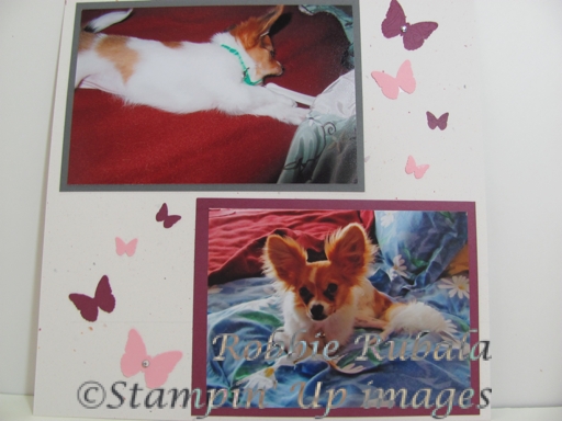 Well I had a great time at the shower. Jess got lots of cute things for the baby. Needless to say I did not get time yesterday to make my scrapbook pages. I did however today get a few minutes so I am posting it late but still within my resolution. Here are the next 2 pages of Bijou’s scrapbook.