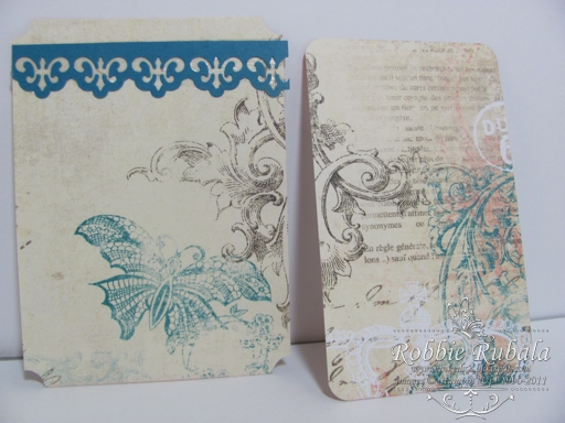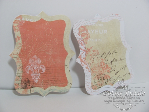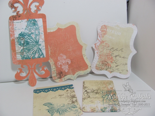 Today I am sharing some of the tags I made for Michaela’s San Francisco mini album. She is really into fleur de lis so I have used that in some of the decorating of the album. So far I have 5 tags. I will probably make more so she has someplace to journal a little. Here are my tags.