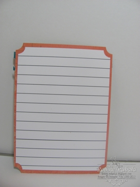 In my blurfing someone shared a site where you can print out your own notebook paper, grid paper, etc. I used the site to print the notebook paper and grid paper for the back for journaling. Here is the back with the notebook paper.