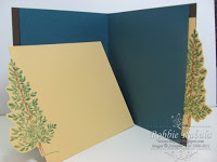 I joined my layers on the side leaving the front part open for a photo mat. I made my photo mats and used the large pine tree from Lovely as a Tree on the edge to form the pull for the mat.