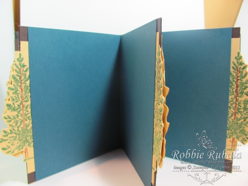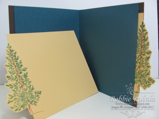I joined my layers on the side leaving the front part open for a photo mat. I made my photo mats and used the large pine tree from Lovely as a Tree on the edge to form the pull for the mat.