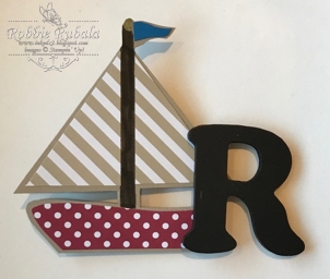 When I went to design this I really did not want to do a flower or any other shape that could be easy to use a framelit for – I know I am too much! So I did some thinking and decided to see if I could create a Sailboat card. I had originally want to have the card open using the side of the sail. But the mast prevented the whole sail from being on the fold line. I had to go back and do some rethinking. Then it occurred to me I could use the bottom of the boat and have the card fold down rather than fold up. After I used my template to trace the boat I cut it out. Then I just needed to add my patterned paper. I used a marker to color in the mast and a gold marker to do the ball at the top. Here is my finished creation.
