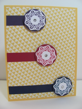 I pulled out one of the sets I got from convention to use on this card – Daydream Medallions. I thought the cute little flower would be perfect for the circle elements. Here is my creation.