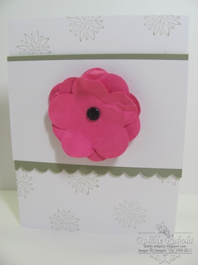 As usual I flipped the sketch to make it work for me. I needed a card for my retirement ladies. These ladies are limited in their strength in their hands so I have to punch everything for them. I thought this would be a fun card for them since they will wet the cardstock and crumple it. I am sure they will enjoy making it.
