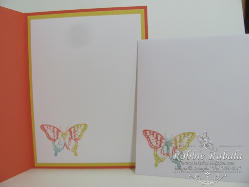 I played earlier in the week with the reinker background technique that I explained on Wednesday. I had also created this paper that I used for my card today. I decided to use butterflies for the main image. Here is my creation.