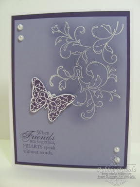 I loved the simplicity of this sketch. I like how my card turned out so I may use this as one of my convention swaps. What do you think? Here is my creation.