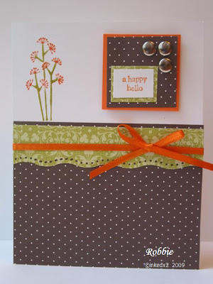 Third Card – this card is for Color Create’s color challenge of orange, green, and brown. It also fits Belli Challenge blog’s use of jumbo brads.