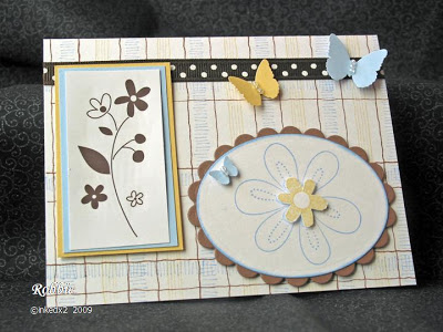 Card Positioning Systems and they had an interesting sketch so I decided to use it for one of my cards. I stamped my background then began putting the images together. Once the images were completed and mounted I need to add some embellishments. I had some of this Chocolate Chip dotted ribbon that I felt looked good with it. The card didn’t seem to be suited for a bow so I wasn’t sure what to do next. I decided to try some butterflies which looked nice so I attached some seed beads for the body and finished mounting everything. Here is the sketch and my first creation.