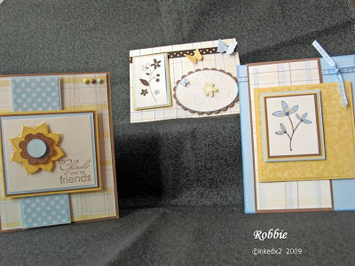 SplitcoastStampers had a color challenge each Tuesday. The color combination this week was Bashful Blue, Close to Cocoa, and So Saffron. I thought it might be fun to use those colors for my cards this week. From there I created the set of cards pictured below.
